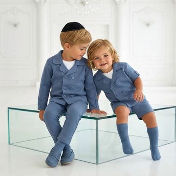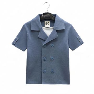 Fine Knit Short Sleeve Blazer - Dusty Blue