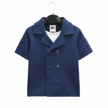 Fine Knit Short Sleeve Blazer - French Navy